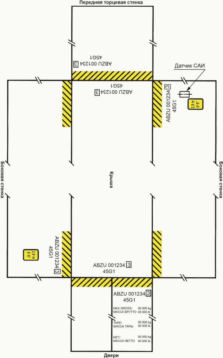 Рисунок 5 - Расположение основных и дополнительных знаков на контейнере
