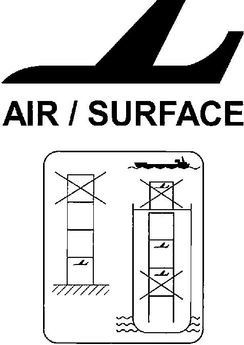 Размеры рисунка самолета в символе должны быть высотой не менее 130 мм (5 дюймов) и длиной не менее 360 мм (14 дюймов), а символа штабелирования - высотой не менее 280 мм (11 дюймов) и шириной не менее 260 мм (10 дюймов). Рекомендуется выдерживать пропорции. Прописные буквы должны быть высотой не менее 80 мм (3 дюйма).