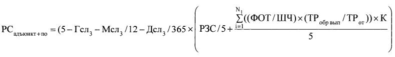 б) для сотрудника, окончившего адъюнктуру образовательной организации высшего образования или научной организации, с которым расторгнут контракт и который уволен в течение 5 лет по окончании обучения в адъюнктуре образовательной организации высшего образования или научной организации, - по формуле: