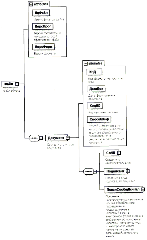 XML схема файла обмена приводится отдельным файлом и размещается на официальном сайте Федеральной налоговой службы в информационно-телекоммуникационной сети "Интернет".