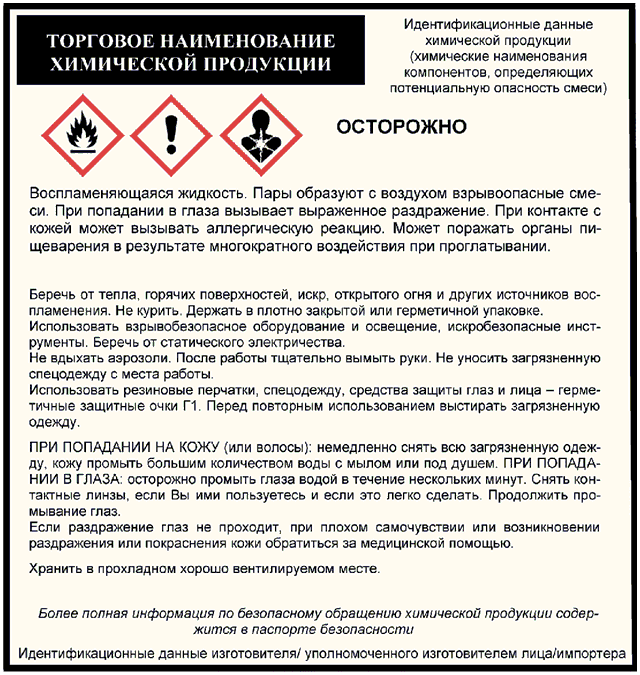 4.1.3 Предупредительная маркировка является частью общей маркировки химической продукции, в том числе может быть совмещена с транспортной и/или потребительской маркировкой.