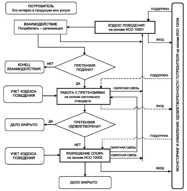Настоящий стандарт совместим с ИСО 10001, ИСО 10003 и ИСО 10004. Данные стандарты могут использоваться как независимо, так и совместно друг с другом. При совместном использовании настоящий стандарт, ИСО 10001, ИСО 10003 и ИСО 10004 могут являться частью более широкой и интегрированной основы для повышения удовлетворенности потребителей за счет кодексов поведения, работы с претензиями, разрешения споров и мониторинга, и измерения удовлетворенности потребителей (см. приложение A).