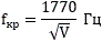 "13.3 Для проверки допустимости применения в расчетах характеристик исследуемого зала методом статистической акустики в нормируемом диапазоне частот 125 - 4000 Гц следует рассчитать критическую частоту - , выше которой наблюдается достаточное количество собственных мод (частот) воздушного объема. Если расчет показал, что