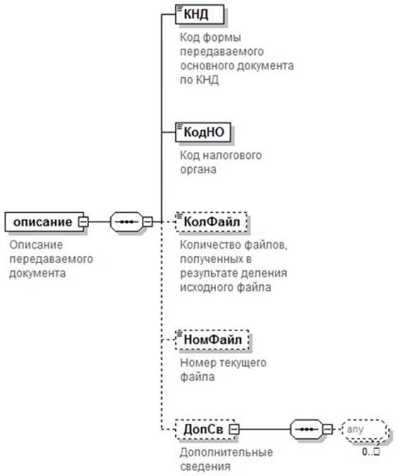 Настоящий документ описывает требования к XML-файлам передачи в электронном виде описания передаваемого документа, используемого налоговыми органами при реализации своих полномочий в отношениях, регулируемых законодательством о налогах и сборах (далее файл обмена).