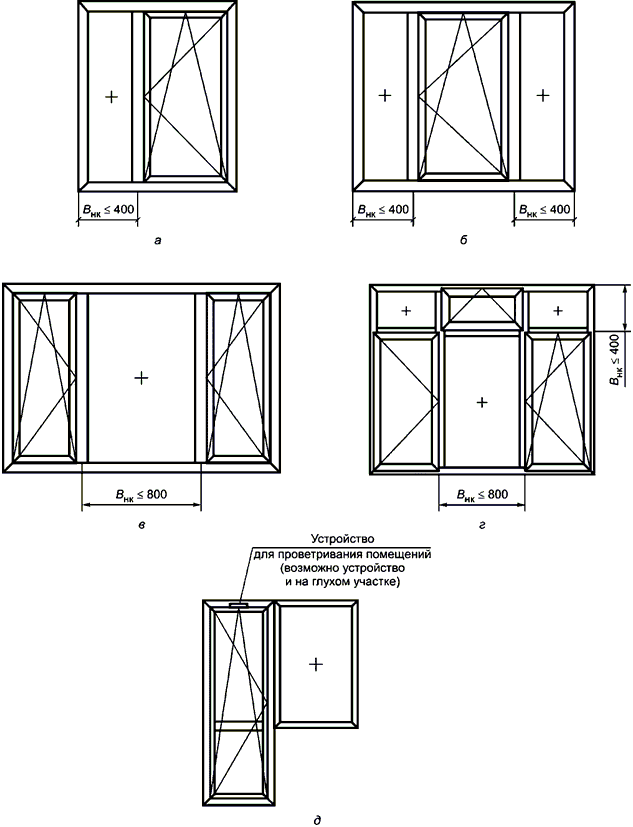Б.1.8 При конструировании оконных и балконных блоков следует учитывать, что применение встроенных приточных клапанов (устройств) может приводить к снижению их акустических, светотехнических и теплотехнических характеристик.
