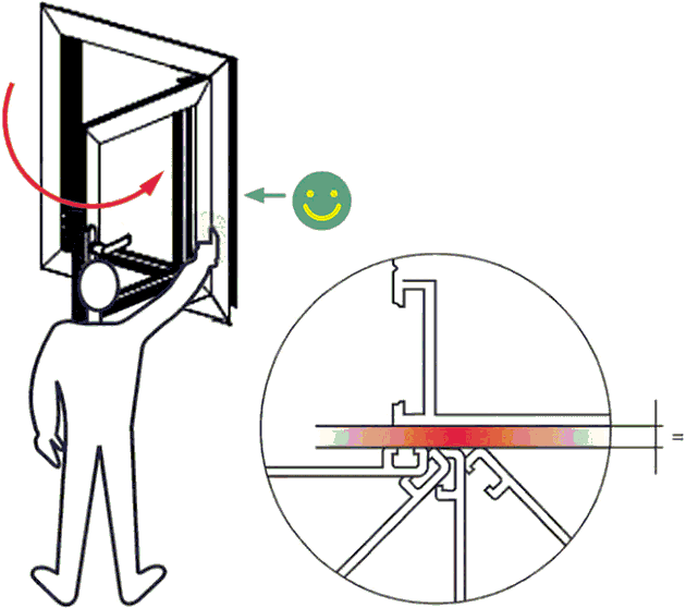 Рисунок Г.15 - Пример установки фрамужного механизма открывания, работающего от центральной ручки