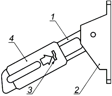 1 - поворотная пластина; 2 - основание; 3 - замочная скважина замка безопасности; 4 - подвижная плата с замком