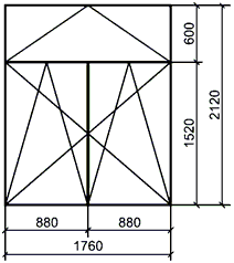 Б.2.5 Фактический момент инерции силовых профильных элементов оконных и балконных блоков с вертикальными и горизонтальными импостами определяют без учета моментов инерции створчатых элементов изделий и принимают равным: