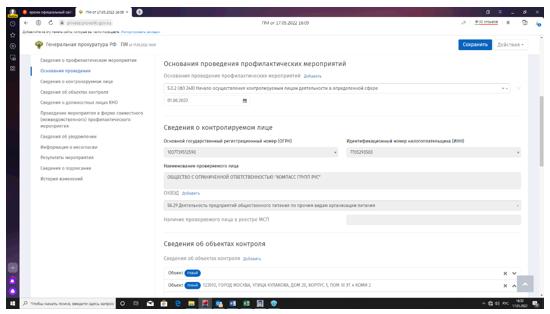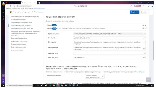 - Сведения о должностных лицах контрольных (надзорных) органов, участвующих в соответствующих профилактических мероприятиях.