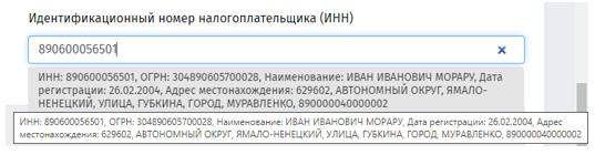 Необходимо выбрать появившееся значение из выпадающего списка, если данное окно не появилось необходимо сохранить ПМ и будет направлен запрос в ФНС.