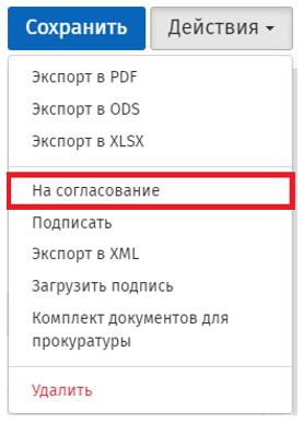 Для перевода КНМ в статус "На согласовании" необходимо выбрать действие "На согласование".