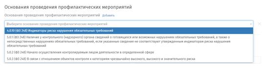 Рисунок 37 - Выбор основания проведения профилактических мероприятий