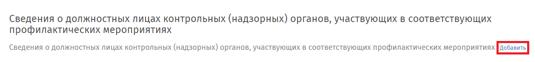 Рисунок 38 - Добавление сведений о должностных лицах контрольных (надзорных) органов, участвующих в соответствующих профилактических мероприятиях