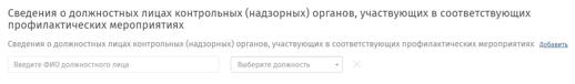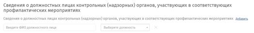 Рисунок 46 - Добавление сведений о должностных лицах контрольных (надзорных) органов, участвующих в соответствующих профилактических мероприятиях