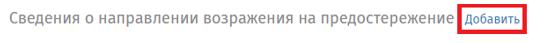 Рисунок 41 - Добавление сведений о направлении возражения на предостережение