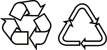 Цифру, обозначающую код идентификации, помещают внутри петли Мебиуса (треугольника), а под треугольником размещают аббревиатуру, обозначающую тип материала, из которого изготовлено изделие.