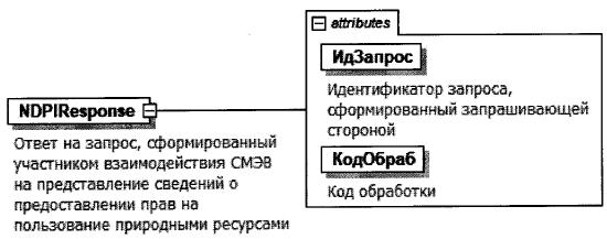 NDPIResponse - Ответ на запрос, сформированный участником взаимодействия СМЭВ на представление сведений о предоставлении прав на пользование природными ресурсами.