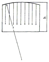 На рисунке 5 приведены три варианта проектного решения купола. Вариант а иллюстрирует крайне неудачное решение, радиус кривизны купола примерно равен высоте зала, звук фокусируется в центре зала. Вариант б - радиус кривизны составляет половину высоты зала, отражения проходят через точку фокуса и далее распределяются по площади пола. Вариант в - радиус кривизны составляет примерно две высоты зала. Звук отражается от купола в виде пучка параллельных лучей.