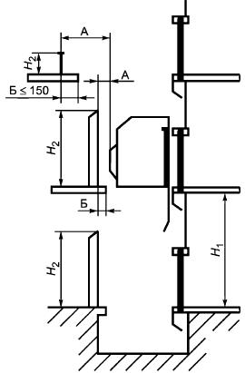 Расстояние Б между ограждением и краем межэтажных перекрытий, ступеней и площадок должно быть не более 150 мм.