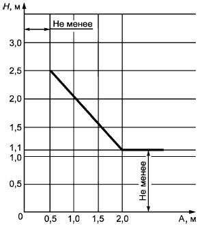 Если расстояние до движущихся частей лифта А превышает 500 мм, то /-/допускается последовательно уменьшать до высоты не менее 1100 мм на расстоянии 2000 мм (см. рисунок 2).