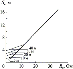 Рисунок 5. Наименьшие допустимые расстояния от молниеотвода до защищаемого сооружения