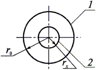 1, 2 - границы зон защиты на уровнях соответственно земли и высоты защищаемого сооружения