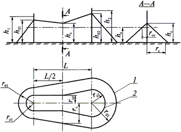Рисунок 8. Схема зоны защиты двойного стержневого молниеотвода: