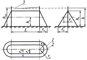 1, 2, 3 - границы зоны защиты на уровнях соответственно земли и высоты защищаемого сооружения