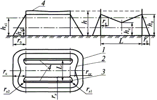 1, 2, 3 - границы зон защиты на уровнях соответственно земли и высоты защищаемого сооружения; 4 - трос