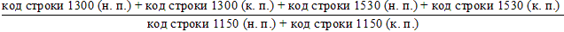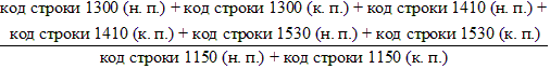 К1 = совокупные активы (код строки бухгалтерского баланса 1600) - долгосрочные обязательства (код строки бухгалтерского баланса 1400) - краткосрочные обязательства (код строки бухгалтерского баланса 1500) + доходы будущих периодов (код строки бухгалтерского баланса 1530).