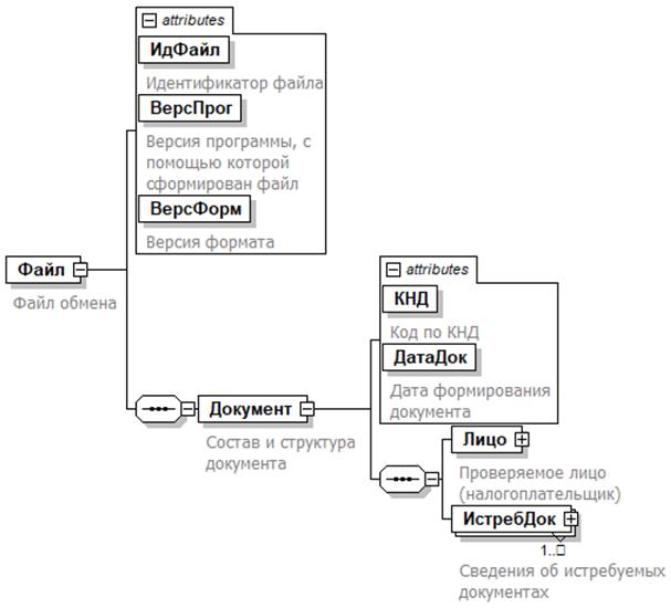 | Порядковый номер запрашиваемого документа | ПорНомДок | А | T(=4) | О | Указывается порядковый номер запрашиваемого документа, согласно требованию о представлении документов в виде 1.XX, где XX - порядковый номер |