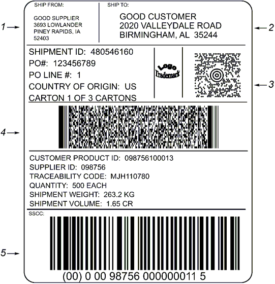 Простая этикетка, соответствующая настоящему стандарту, включает в себя минимальный набор данных, который удовлетворяет требованиям торговых партнеров в цепи поставок, в случае, если они используют для обмена информацией электронный обмен данными.
