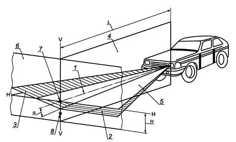 2.46 ось отсчета: Линия пересечения плоскостей, проходящих через оптический центр светового прибора параллельно продольной центральной плоскости ТС и опорной поверхности.