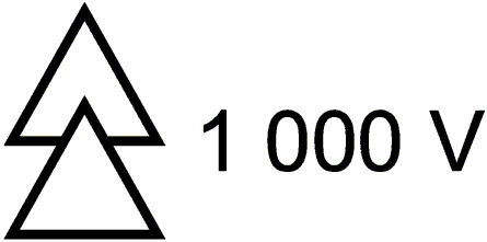 - указание 1000 В (т.е. максимальное рабочее значение электрического напряжения для переменного тока), находящееся непосредственно рядом с символом "двойной треугольник" (см. рисунок 1);