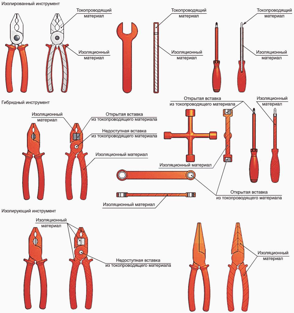 3.1.3 изолирующий инструмент (insulating hand tool): Инструмент, полностью изготовленный из электроизоляционных материалов или имеющий вставки из токоведущих материалов, используемых для армирования, но не имеющий открытых токоведущих частей.
