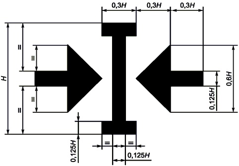Примечание - Для символа точное отношение высоты фигуры к основанию треугольника составляет 1,43:1. Для удобства это отношение может быть заменено на значение между 1,4 и 1,5;