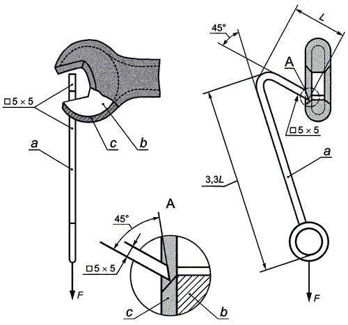 Гаечные и трещоточные ключи: максимальное усилие руки = 500 Н.