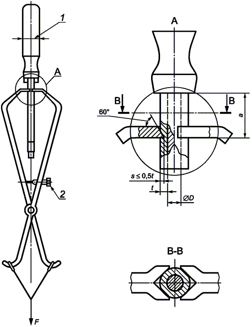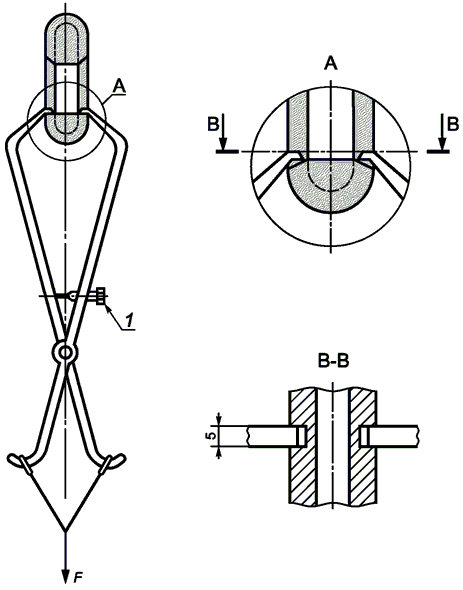 Усилие прикладывают на расстоянии 35 мм от наружных концов сжимающих рукояток.