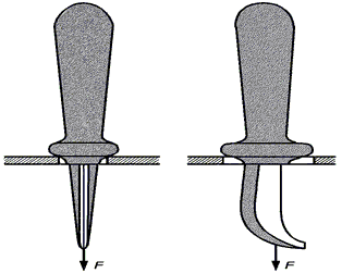Усилие прикладывается одновременно на обеих рукоятках в противоположных направлениях, на расстоянии 35 мм от наружных концов рукояток, расположенных перпендикулярно к оси объекта обработки.