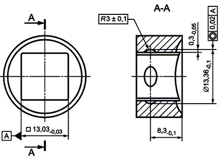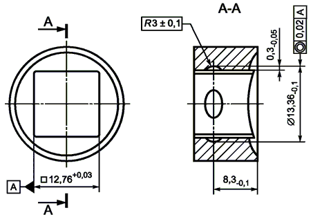 Номинальный размер присоединительных квадратов измеряют между параллельными плоскостями. Если параллельные плоскости отсутствуют (например, треугольный привод, привод пятиугольника и т.д.), то номинальный размер следует указывать сопоставимым образом.