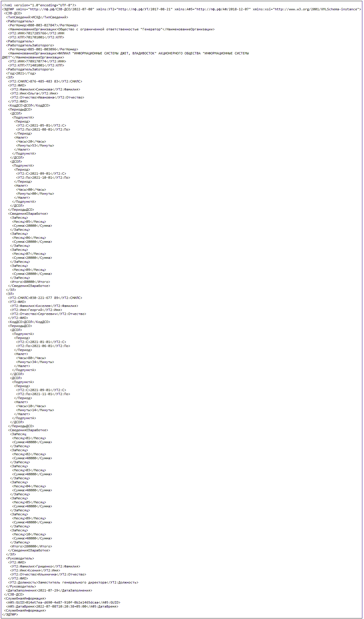 | 1.1.5.5.1 | ЗаМесяц | Блок | Да | Максимальное количество появлений: 12 | Блок сведений о заработке, учитываемом при исчислении размера доплаты к пенсии в разрезе года. Может быть несколько записей | |