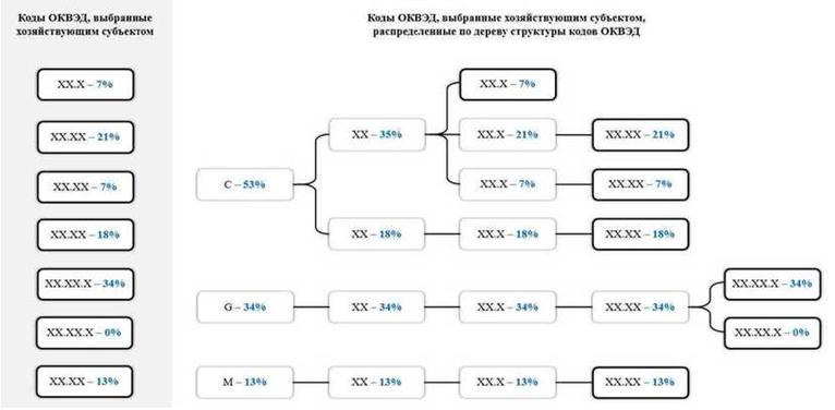 Рис. 1. Распределение кодов ОКВЭД по методу "сверху вниз"