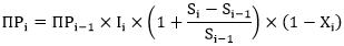 Изменение необходимой валовой выручки, производимое в целях сглаживания роста цен (тарифов), применяется регулирующим органом с целью непревышения уровня цен (тарифов) второго полугодия года i долгосрочного периода регулирования относительно уровня цен (тарифов) первого полугодия на значение (, в процентах), рассчитанное по формуле: