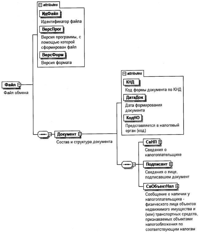 1. Настоящий формат описывает требования к XML-файлам (далее - файл обмена) передачи в налоговые органы в электронной форме сообщения о наличии у налогоплательщика - физического лица объектов недвижимого имущества и (или) транспортных средств, признаваемых объектами налогообложения по соответствующим налогам.