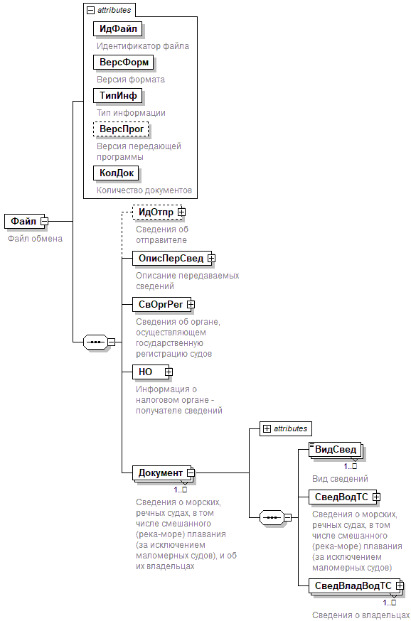 1. Настоящий формат описывает требования к XML файлам передачи сведений о морском, речном судне, в том числе смешанного (река-море) плавания (за исключением маломерных судов) (далее - судно), и об их владельцах, представляемых органами или должностными лицами, осуществляющими государственную регистрацию судов (далее - орган), в налоговые органы в электронной форме (далее - файл обмена).