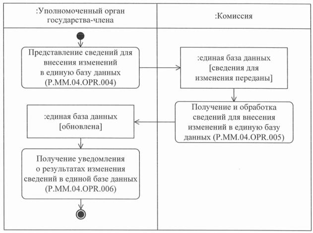 В зависимости от вида изменений выполняются процедуры "Включение сведений в единую базу данных" (P.MM.04.PRC.001), "Изменение сведений в единой базе данных" (P.MM.04.PRC.002).