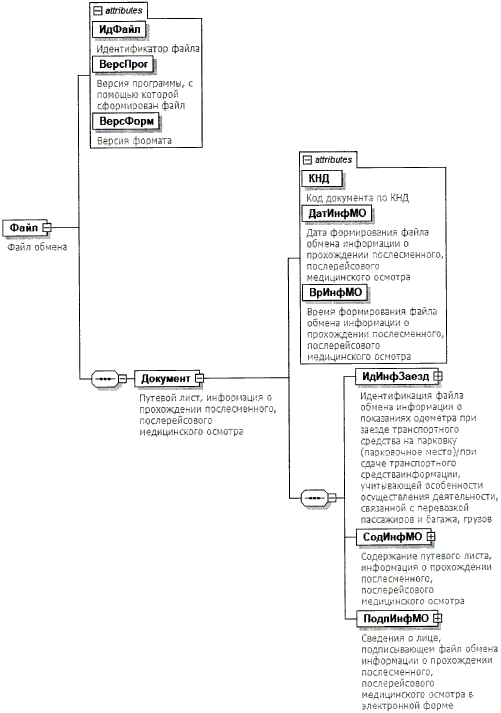 | Путевой лист, информация о результате послесменного, послерейсового медицинского осмотра | Документ | С | | О | Состав элемента представлен в таблице 15.2 |