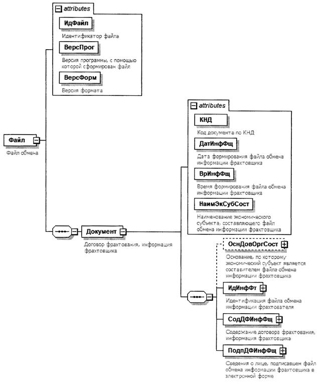 | Идентификатор файла обмена информации фрахтователя | ИдФайлИнфФт | А | T(1-255) | О | Содержит (повторяет) имя файла обмена информации фрахтователя без расширения |