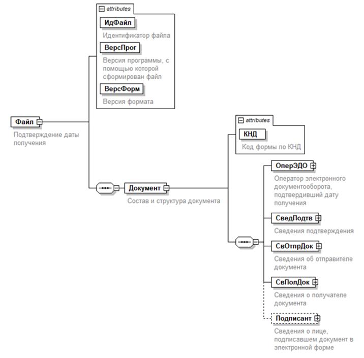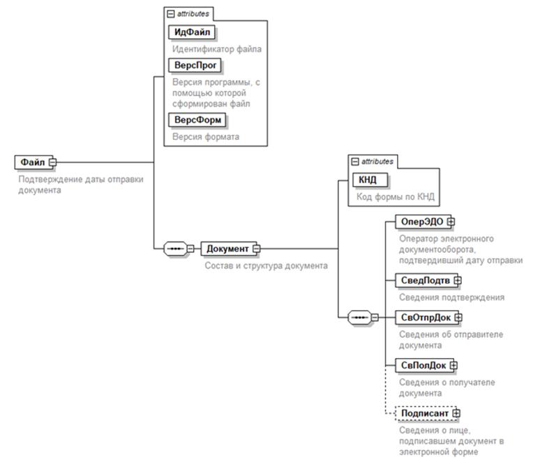 | Оператор электронного документооборота, подтвердивший дату получения | ОперЭДО | С | О | Состав элемента представлен в таблице 4.3 | |