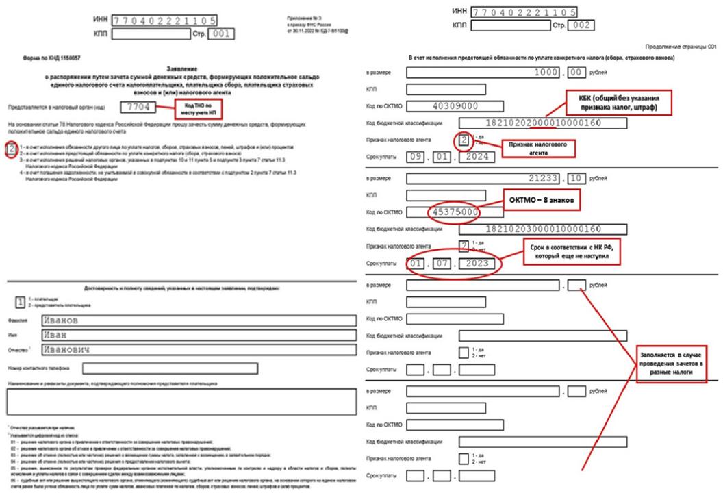 Для зачисления денежных средств в виде определенного налогового дохода соответствующего бюджета Российской Федерации налогоплательщик, согласно статье 78 Налогового кодекса Российской Федерации (далее - Кодекса), вправе представить в налоговый орган по месту учета заявление о распоряжении путем зачета суммой денежных средств, формирующих положительное сальдо единого налогового счета, в счет исполнения предстоящей обязанности по уплате конкретного налога (сбора, страхового взноса) (далее - Заявление о зачете).